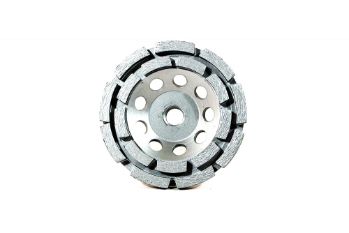 Our Premium Double Row Style Grinding Cup Wheel is double laser welded and contains 40%-44% diamond concentration. We use a 30-40 grit, grade 10 GE diamond that will hold up to the most abrasive concrete you'll ever come across. Used with your grinder, you will fly through concrete like a hot knife though butter! Available in 2 arbor styles 7/8 with 5/8" bushing or 5/8 - 11 Threaded